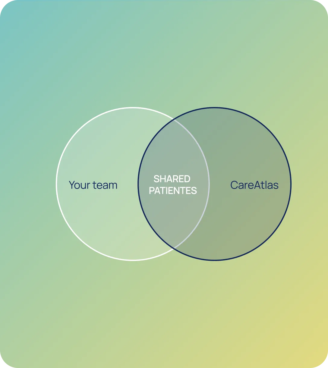 CareAtlas serves as provider of record through a revenue-sharing partnership — no upfront investment required, no new hires required. We manage RPM, CCM, TCM, and APCM across service lines, reduce readmissions, and generate net-new Medicare revenue. Proven in community and rural settings.