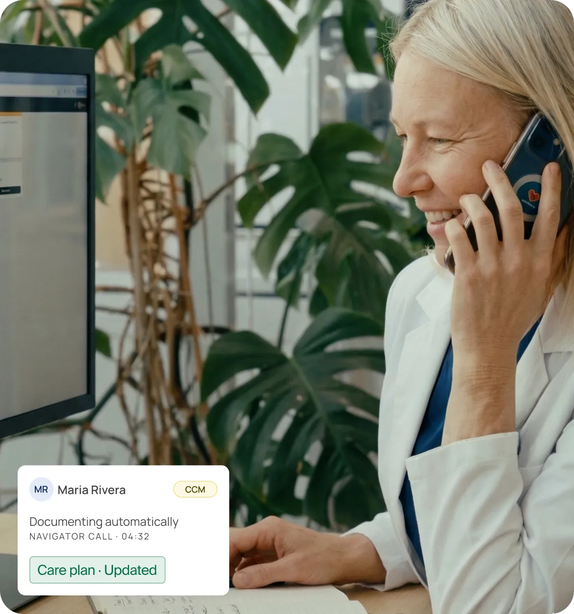Your patients get a dedicated care navigator who knows their name, calls them regularly, and helps them manage their conditions. Not a chatbot. Not an app. A person.
